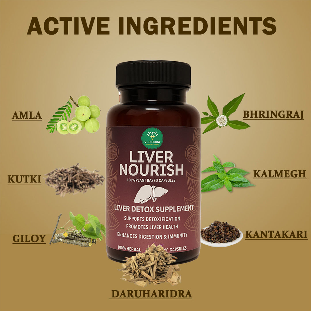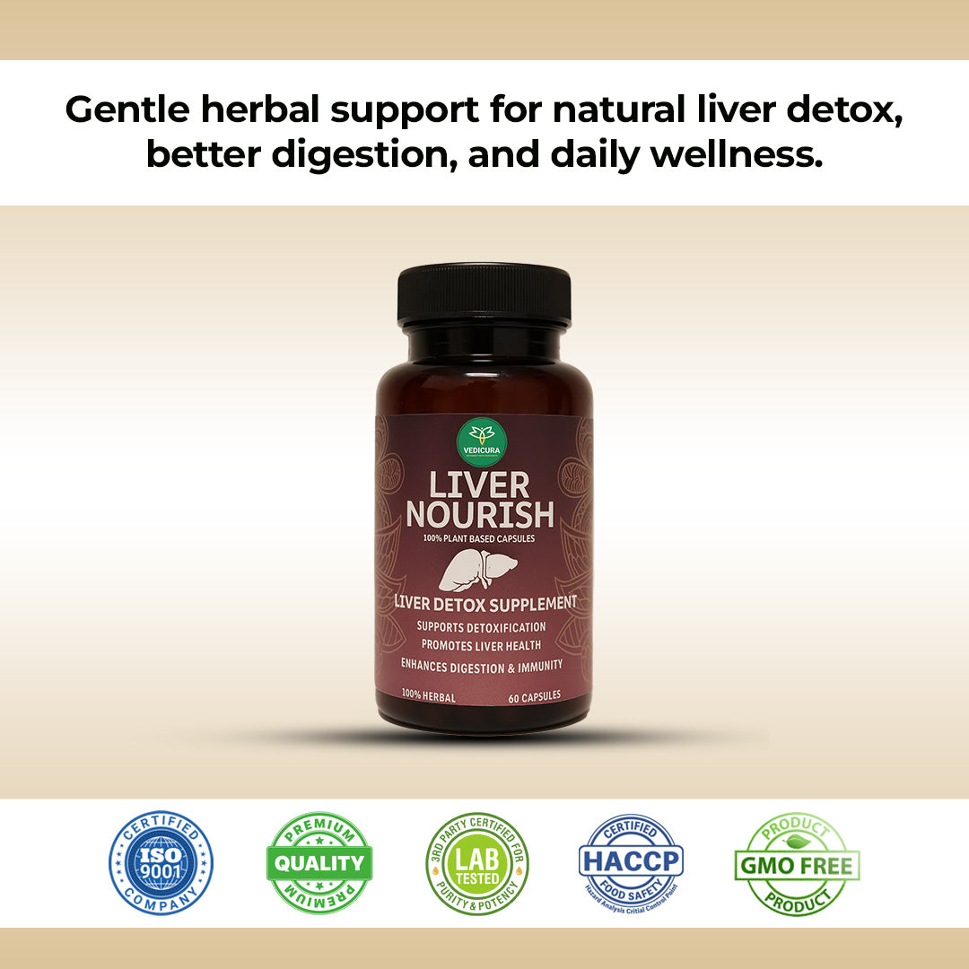 Discover the key benefits of Liver Nourish, including how it supports liver detoxification, improved digestion, and enhanced overall vitality. Our experts will explain the science behind its Ayurvedic formula and how it promotes liver health, boosts metabolism, and supports energy levels, helping you achieve optimal wellness and fitness goals.